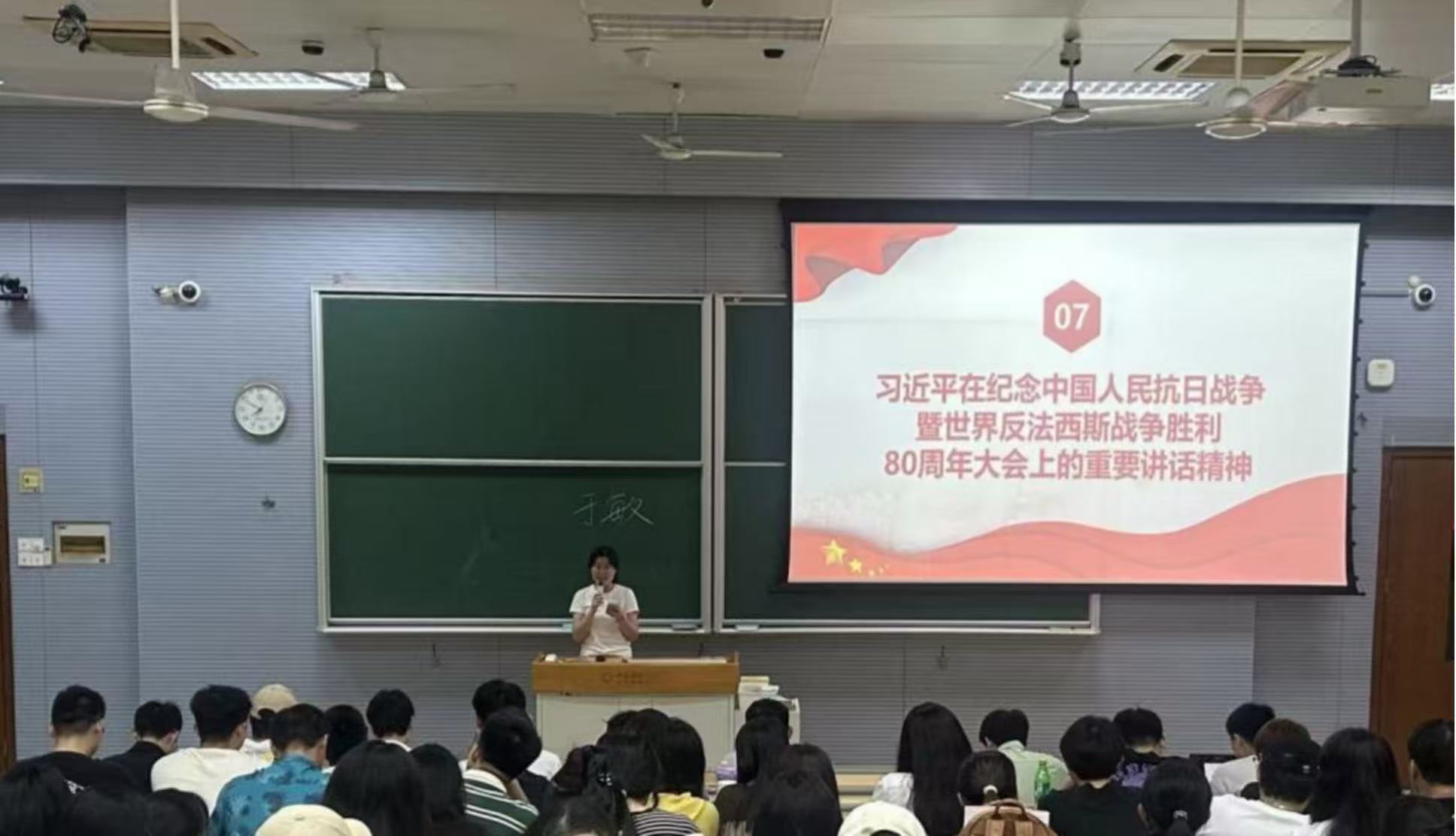 学院团委学生兼职副书记夏登月同学带领全体学员专题学习习近平总书记在纪念中国人民抗日战争暨世界反法西斯战争胜利 80 周年大会上的重要讲话精神。通过原原本本学讲话、结合史实谈感悟,学员们进一步认识到抗日战争胜利的伟大历史意义,深刻领会到 “以史为鉴、开创未来” 的时代要求,纷纷表示将从历史中汲取奋进力量,以青年担当守护来之不易的和平,以青春奋斗书写民族复兴的新篇章。
