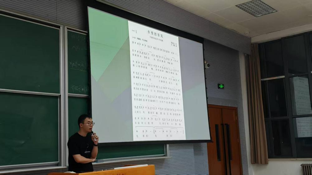 校合唱团团长吕泊宁同学为我院新生教唱校歌——《永恒的东风》。从旋律节奏的精准把握到歌词内涵的深刻解读,吕泊宁同学通过细致讲解与示范领唱,让学员们在悠扬旋律中增强作为科大学子的归属感与责任感。