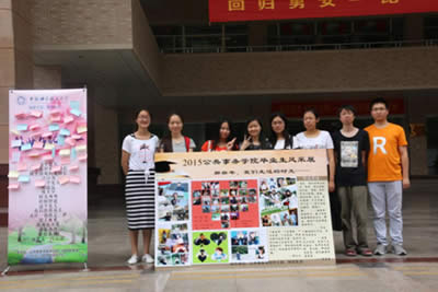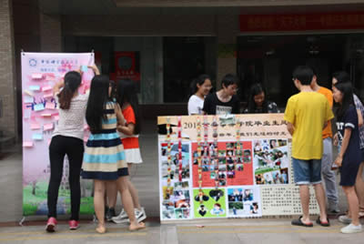 | 时光飞逝,转眼又到了蝉鸣盛夏的六月。六月,又是毕业生离别的日子。 6月7日上午,公共事务学院研究生会同学于东校区美食广场特此举办“毕业纪念展”活动,向全校范围内征集同学们对师兄师姐的毕业寄语,并收集毕业生们的毕业感悟。 活动前期,研究生会的同学们向我院毕业生征集了大量的照片,包括风景照,人物照,课堂写真、生活速递等。制作成了展板,展示在活动现场,向全校师生展现出了我院毕业生的精彩风貌。 纪念照片展迅速引起了同学们的围观,大家纷纷写上对师兄师姐的祝福,留下了美好的期盼。 “祝师兄师姐轻松毕业,快乐职场~~~” “路在脚下,明天会更好!” “感谢有你们的指导与陪伴,祝福师兄师姐找到自己的幸福!珍重!” “既然选择了远方,便只顾风雨兼程,你是我们的骄傲和榜样!fighting!” ![]() 所有的相遇都是久别重逢,所有的离别都是为了再次相遇。 祝公共事务学院2015级毕业生毕业快乐、前程似锦。 ![]() 中国科大公共事务学院 2015-06-08 |
