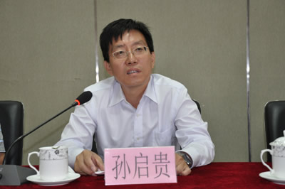 孙启贵老师代表教师发言,他建议各位新生要思考为什么学、学什么、怎样学这三个问题,以精炼的语言做简短的学习指导,要求同学们要注重综合能力的培养,做到善学善思。