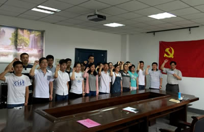 2016年6月20日我院党委在科大南区公共事务学院601会议室召开党员宣誓大会。院党委书记李晓纲、教工党支部书记周兴国,学生党支部书记及党员共计22人参加了宣誓大会。会议由周兴国老师主持。 会议开始,周兴国老师首先介绍了我院党委、学生党支部学习“两学一做”的基本情况,对学生党支部的学习“两学一做”的热情表示赞扬。鼓励各位党员充分利用好我院微信公众号,以党支部的名义积极组织党员集中学习、交流,做好学习心得撰写及收集。 随后,周老师指出作为党员党性的体现,希望各位党员按规定、按时的交纳党费。对部分即将毕业的党员,周老师要求,到单位要以党员身份严格要求自己,积极工作,时刻保持党员的先锋模范作用。周老师针对入党誓词变化过程,简要介绍了中国共产党的发展历程,阐述了我党与时俱进的发展理念。 院党委书记李晓纲指出,年轻的党员要结合党的发展过程学习党的知识,从入党誓词的变化,提高对党史的全面认识。李书记寄语2016届毕业生,按照万校长在毕业典礼对研究生提出的三项要求,学会在平凡中做出不平凡的事,扎实做好点点滴滴的细节工作,要将个人规划与单位、国家的大目标保持一致,促进个人的成长。同时,李书记要求党员要身先士卒,在工作中、生活中、学业中牢记自身党员身份,严格要求自己。 ![]() 中国科大公共事务学院 2016-06-21 |