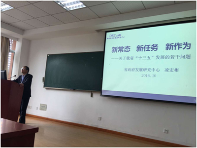 2016年10月30日,中国科学技术大学公共管理教育中心邀请省政府发展研究中心综合经济研究处处长凌宏彬博士为MPA学员作了题为《新常态新任务新作为――关于我省“十三五”发展的若干问题》的专题讲座。 凌宏斌处长首先分析了 我国“十三五”规划形成的国际国内环境背景、确立的根据和发展着力点,详细地解读了十八届五中全会和“十三五”规划中我国经济保持中高速增长、户籍人口城镇化率加快提高、现行标准下农村贫困人口实现脱贫、实施国家重大创新、等多项内容。指出“十三五”规划体现出五大鲜明特色,是人性化的设计、“以人为本”理论的升级版。随后凌处长以第一手资料,对安徽省“十二五”的发展成就,“十三五”的发展环境、发展理念和目标、主要任务,以及规划实施保障等内容作了详实的介绍。 在报告会的最后阶段,凌宏斌处长特意留了一点时间,与同学们进行了互动交流,现场回答了大家提出的问题。 凌宏彬处长的精彩报告给同学们以深刻的启发和鼓舞。 ![]() 中国科大公共事务学院 2016-11-11 |