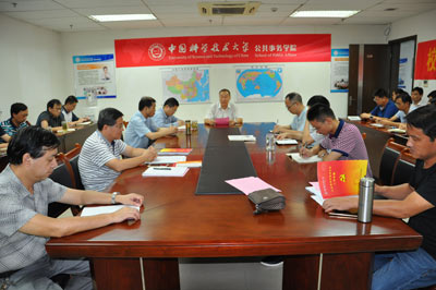 2017年9月6日下午三点,在东区管理科研楼1108会议室,公共事务学院召开全院教职工大会传达学习习近平同志7.26讲话精神及“全国高校思想政治工作会议精神”。会议由院党委书记李晓纲主持。![]() 接下来,宋伟院长带领全院教职员工再次学习“全国高校思想政治工作会议精神”,宋院长指出,习近平总书记在“全国高校思想政治工作会议上”强调高校思想政治工作关系高校培养什么样的人、如何培养人以及为谁培养人这个根本问题,要坚持把立德树人作为中心环节,把思想政治工作贯穿教育教学全过程,实现全程育人、全方位育人,努力开创我国高等教育事业发展新局面。全院教职员工要切实将讲话精神落实到工作实处,将讲话精神作为指导学院工作尤其是学生思想政治工作的指南。宋伟院长还就暑假期间学院的科研、教学、培训、科技扶贫等方面工作做了总结,对学院2017年下半年的工作及重点做了动员和布置。 会议最后,褚建勋副院长对我院 “意识形态专项整改”的推进情况做了总结 ,强调意识形态工作要建立长效机制。并就《公共事务学院教师课堂教学基本行为规范》做说明,要求全员教师要坚守课堂教学的意识形态阵地,按照培养“六有大学生”的标准和要求开展教学工作。(傅晨 供稿) 中国科大公共事务学院 2017-09-13 |