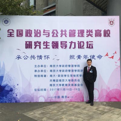 2017年11月18日-19日,由南京大学政府管理学院主办,南京大学政府管理学院研究生会承办的2017全国政治与公共管理类高校研究生领导力论坛在南京大学政府管理学院举行。来自全国100多所高校政治与公共管理类高校研究生代表参加了本次论坛。我院作为受邀学院之一,由院研究生会副主席张昊作为代表参与了本次论坛。