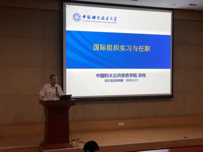 2018年5月17日下午,应校招生就业处邀请,我院宋伟院长为全校师生带来了一场题为“国际组织实习与就职”的讲座。本次讲座由校招生就业处处长杨锋主持。 讲座伊始,杨锋处长首先介绍了我校学生的主要就业去向,并指出就业决定之于个人、学校和国家未来发展的重要性,希望同学们以此讲座为契机,对为什么以及如何在国际组织任职有更多的关注和了解。 ![]() 中国科大公共事务学院 (陈宏波供稿) 2018-05-18 |