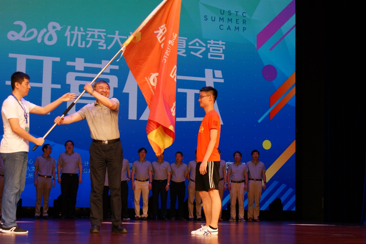7月17日上午9时许,由研究生院、公共事务学院主办,国家知识产权培训(安徽)基地协办的第一届知识产权夏令营的营员们伴随着《科大映像》宣传片,和着青春洋溢的校园原创歌曲,迈着豪迈的步伐步入东区大礼堂,参加在那里举行的全校性开营仪式。人群中的那一抹橘黄,是睿智的象征,也是IP生命力的体现。当来自中国农业大学的营旗手张序铭庄严地从校党委书记舒歌群教授手中接过营旗时,第一届知识产权夏令营也就拉开了帷幕。