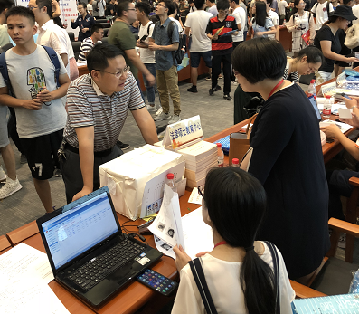 9月4日上午8点,我院2018级新生迎新活动在东区物质科研楼三楼举行。学院傅晨老师带领志愿者积极有序地开展了迎新工作。宋伟院长、李晓纲书记、褚建勋副院长、陈晓伶副书记、学工办王忠平主任等学院领导亲临现场对迎新工作进行指导。
