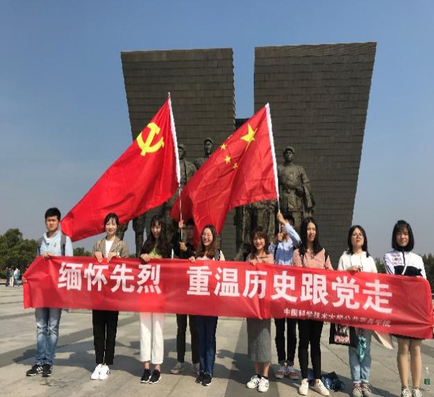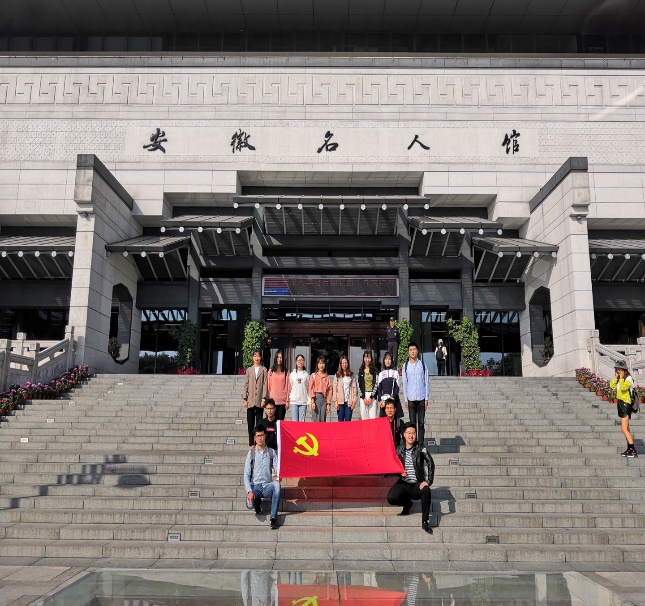 为大力弘扬革命精神和爱国精神,让广大党员自觉接受党的优良传统教育。2018年10月13日,秋高气爽、艳阳高照。中国科学技术大学公共事务学院研究生第一党支部联合第四党支部,早晨八点准时在科大东区小西门集合,携带党旗、佩戴党员徽章,集体乘坐大巴共同前往参观具有特别历史意义的红色基地——安徽名人馆和渡江战役纪念馆。值周末交通顺畅,上午八时四十分许,安全抵达面向浩瀚巢湖的渡江战役纪念馆。大家有秩序的下车,在名人馆门前集合。耐心地倾听支部书记为大家介绍本次活动的背景、目的、主题以及参观注意事项。
