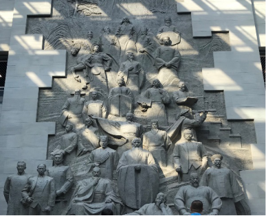 走进安徽名人馆首先映入我们眼帘的是一面栩栩如生、高大庄严的、刻有28位安徽名人的巨幅浮雕石像。展区内有人物蜡像、形态逼真、惟妙惟肖;有视频音像、动画形象,生动立体;有仿真场景、逼真的冰冻湖面、真实移景的芦苇,有文献、笔记和遗物,参观者能够“近”距离、多方位了解历史人物。参观结束,大家集体拍照留恋。