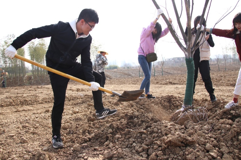 2019年3月16日植树节后夕,时逢周末,公共事务学院研究生第一、第四党支部为贯彻“绿色发展”理念,学习习近平总书记关于“广泛开展国土绿化行动,人人出力,日积月累,让祖国大地不断绿起来美起来”的重要讲话精神,研究生第一和第四党支部赴安徽省合肥市长丰县龙岗小学由当地林业部门部署的种植区域,参加植树造林活动。