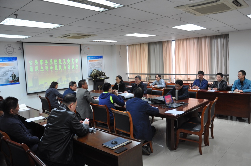 为深入学习贯彻习近平新时代中国特色社会主义思想,推进“两学一做”学习教育常态化制度化,提升基层党组织组织力,严格党员教育管理监督,根据《关于召开2018年度党支部组织生活会和开展民主评议党员的通知》,2019年3月28日下午,公共事务学院教工党支部召开了2018年度组织生活会和开展民主评议党员活动。会议由支部书记王忠平同志主持。