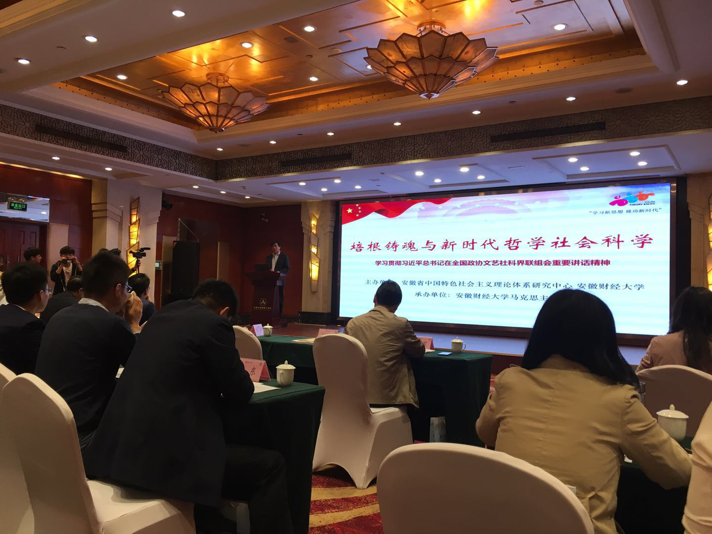 安徽财经大学副校长周加来简要介绍了安徽财经大学近年来在习近平新时代中国特色社会主义思想的带领下,教育工作尤其是哲学社会科学方面所做出的努力,并就“培根铸魂”发表讲话。