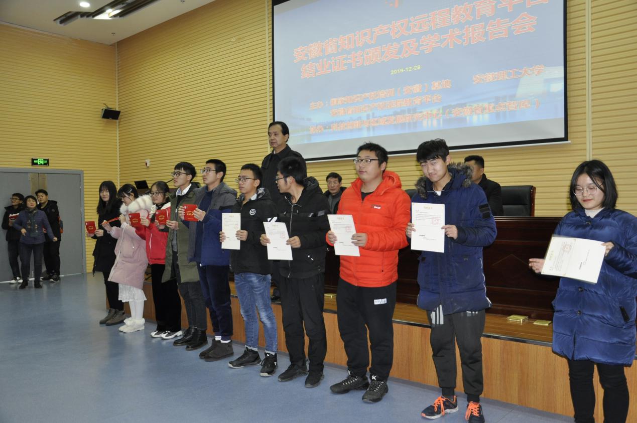 此次培训班通过安徽知识产权远程教育平台为学生开设知识产权相关课程(包括商标法、专利法等),主要目的是为了弥补理工科类大学生知识产权相关基础知识薄弱的问题。本次网络远程教育课程历经70余天,共有1280名学生顺利通过结业考试。国家知识产权培训(安徽)基地常务副主任周朝生与安徽理工大学马克思主义学院负责人一起为现场学生代表颁发了结业证书。