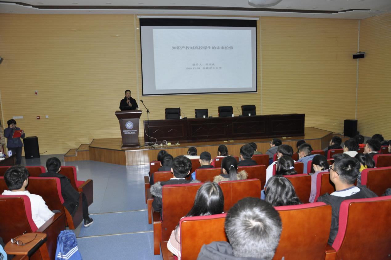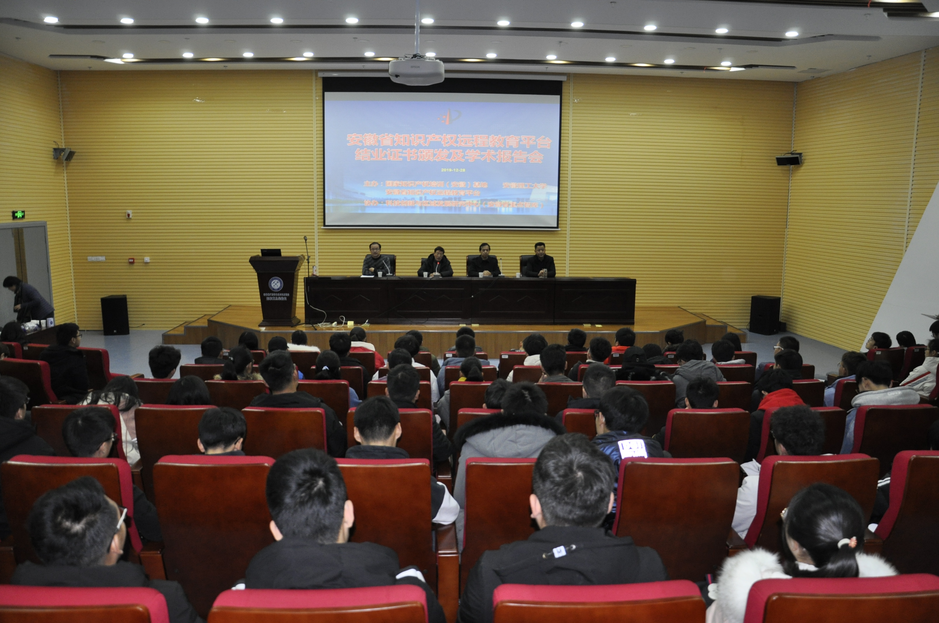 2019年 12月28日, 安徽知识产权远程教育平台知识产权法律基础培训班结业仪式及学术报告会在安徽理工大学举行。本次培训活动由设在中国科学技术大学的国家知识产权培训(安徽)基地、安徽省知识产权远程教育平台及安徽理工大学马克思主义学院共同主办。中国科大公共事务学院院长助理、国家知识产权培训(安徽)基地常务副主任周朝生、力澜律师事务所主任沈国庆律师、安徽理工大学马克思主义学院院长孙功等与300余名师生代表参加了仪式及学术报告会。