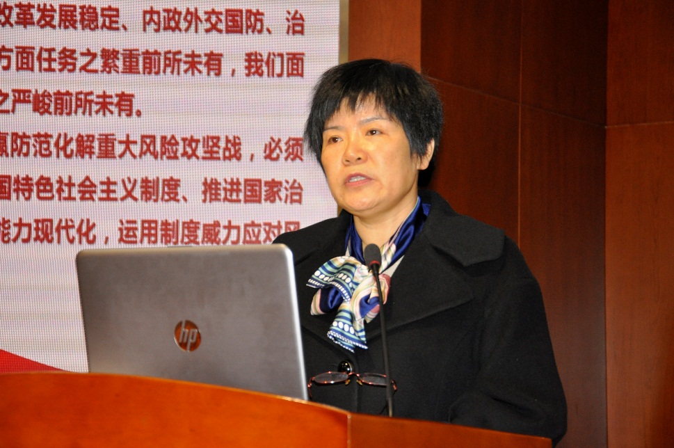 2019年12月31日上午,在我校东区师生活动中心五楼报告厅,中国科大学习贯彻党的十九届四中全会精神宣讲团成员、总会计师黄素芳为公共事务学院及软件学院全体师生作“深入学习贯彻党的十九届四中全会精神”的宣讲报告。报告会由公共事务学院党委书记李晓纲、软件学院党委书记尹红共同主持。