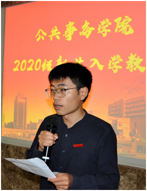 2019级同学姚志炜作为老生代表和同学们分享了他进入科大以来的丰富多彩的经历和收获,最后他希望新一届同学能够融入科大,享受科大的美好,书写属于自己关于科大的精彩故事.