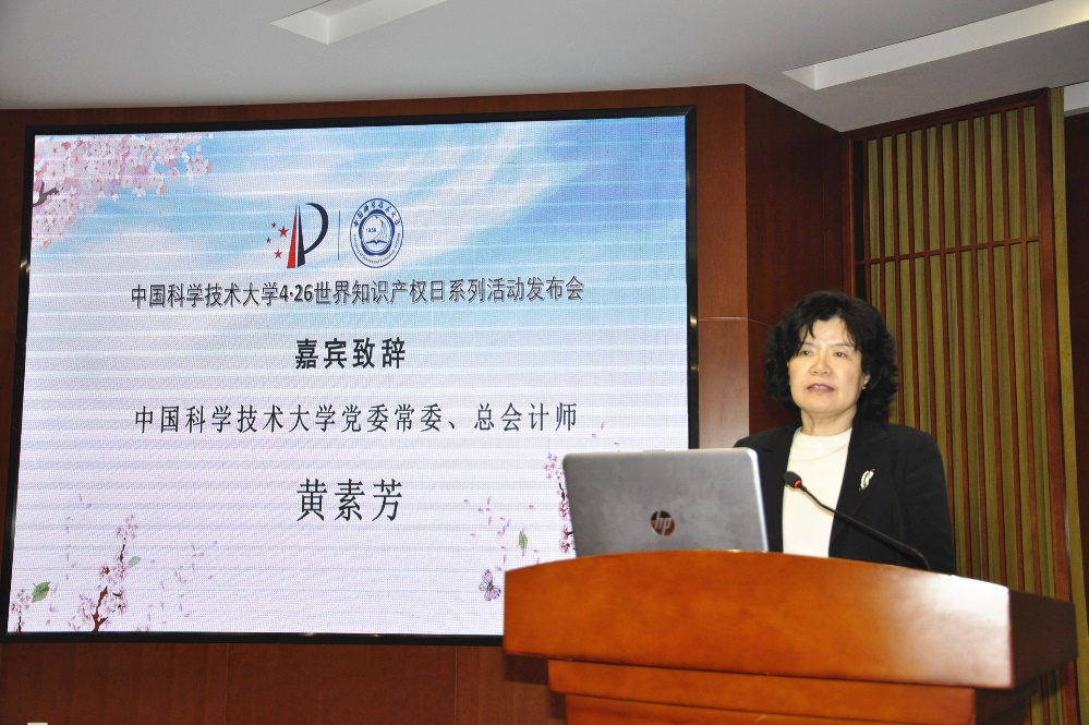 黄素芳总会计师代表学校致欢迎辞;她说,2021年4月26日是习近平总书记考察中国科大5周年纪念日,中国科大牢记总书记嘱托,坚持中国特色世界一流大学建设目标方向。我校技术与创新支持中心(TISC)于2020年9月25日顺利通过考核,获得世界知识产权组织与国家知识产权局授牌并正式运营; 《科技与法律》杂志获批中英文双语办刊资质并扩页改版,开始了新的发展;今年3月,国家知识产权局与我校签署了合作共建知识产权研究院框架协议,这是国家知识产权局和高校共建的第一所研究院;知识产权是中国科大结合理工背景发展特色文科的重要方向,中国科大将充分应用优质教育资源,为国家和地方培养更多急需人才。