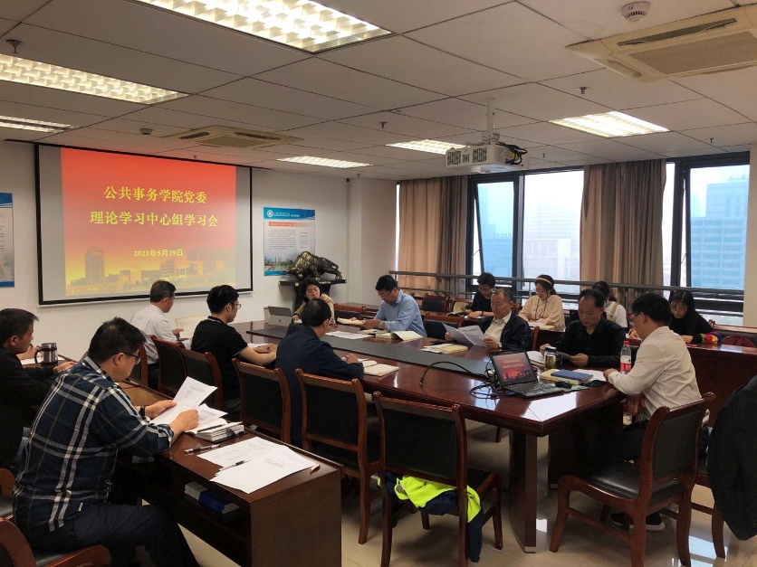 2021年5月19日下午,公共事务学院党委理论学习中心组在管理科研楼1108室召开2021年第三次集中学习会,深入学习习近平《论中国共产党历史》,学习《中央第二巡视组巡视中国科学技术大学党委工作动员会上的讲话》《中国科学技术大学2021年意识形态工作要点》《中国科学技术大学2021年全面从严治党暨党风廉政建设和反腐败工作要点》。会议由学院党委书记丁望斌主持,党委理论中心组成员以及各支部书记参加会议。