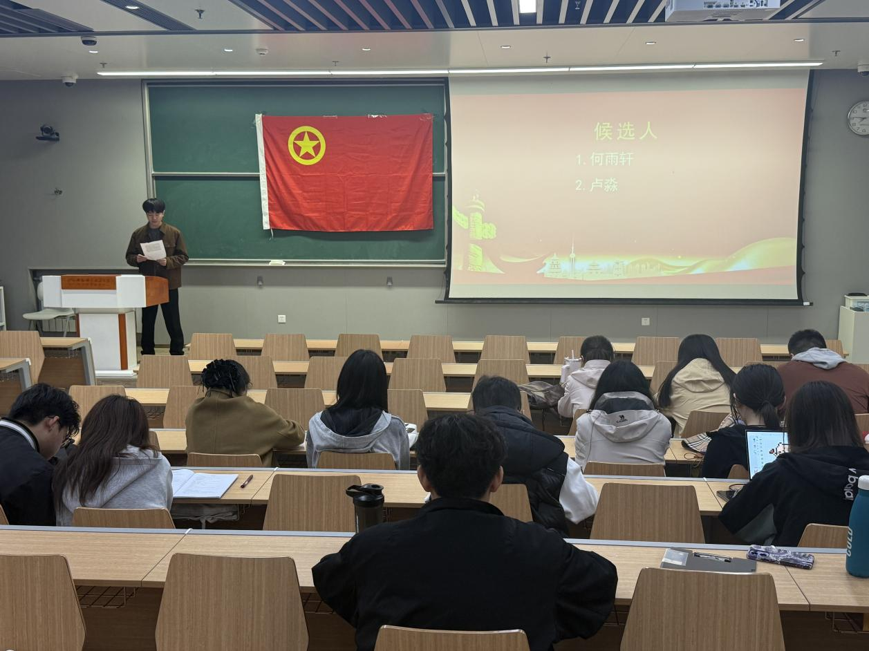 会议伊始,汪璐介绍推优流程及各位候选人基本情况。随后,何雨轩、卢淼两位候选人分别从思想政治、道德品行、入党动机、执行纪律等方面作自我评述。会议以无记名投票方式对两名候选人进行民主评议。由郭俊麟作为监票人、汪璐作为计票人,闫雨婷作为唱票人,进行了投票结果的统计。