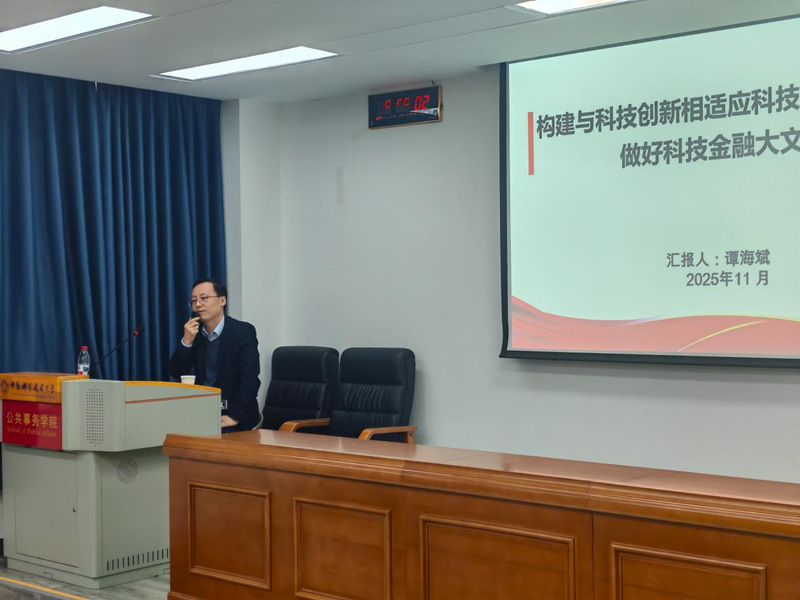 11月6日,安徽省科技厅副厅长谭海斌应邀为学院师生作题为《构建与科技创新相适应的科技金融政策机制,做好科技金融大文章》的学术报告。讲座由我院副院长叶五一教授主持,吸引了院内外众多师生的积极参与。