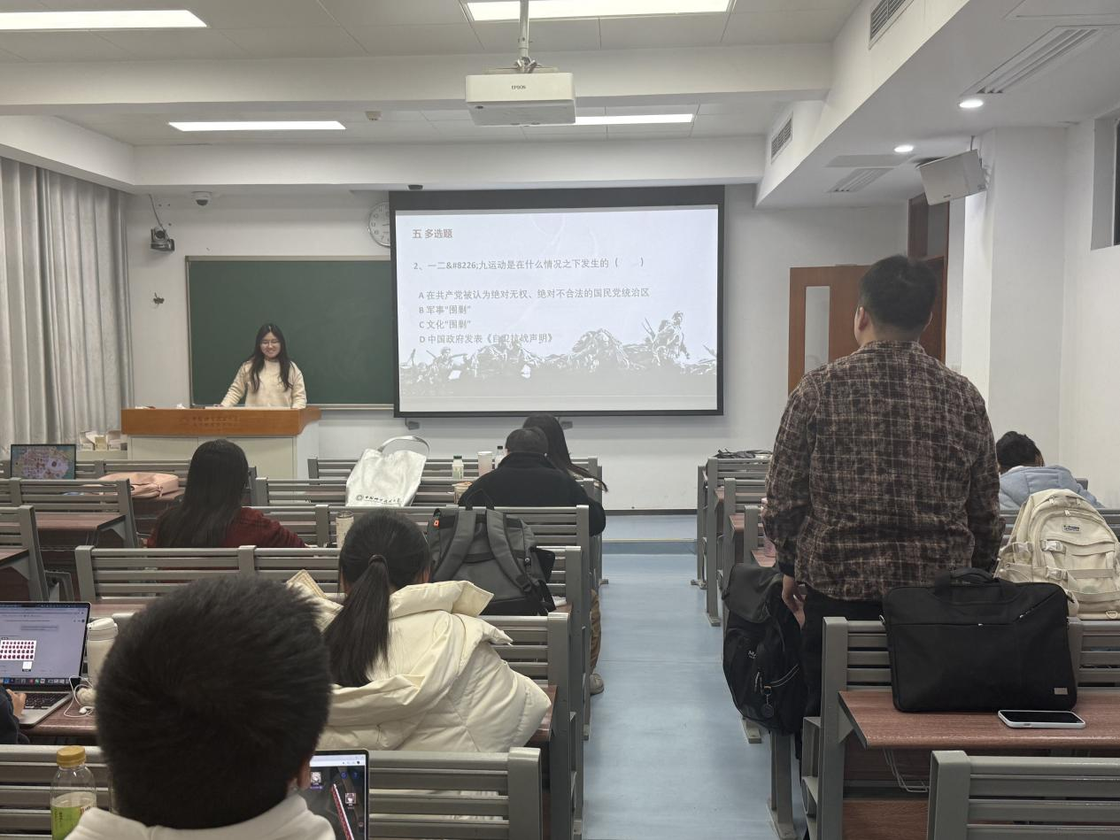 活动前期,团支部组织团员学习“一二·九”运动相关历史资料,组建学习小组深入讨论红色精神。12月5日在第二教学楼2403教室开展集中观课,全体团员统一观看了纪录片《大抗战:“一二·九”运动》,并通过弹幕互动方式增强学习体验。随后开展了线上知识竞答,以限时答题形式检验学习成果。在感悟分享阶段,两个支部各自召开了微团会,团员们踊跃发言,简短分享“我心中的抗战精神”,并汇总形成支部学习小结和“法治担当”宣言,营造了浓厚的爱国主义学习氛围。
