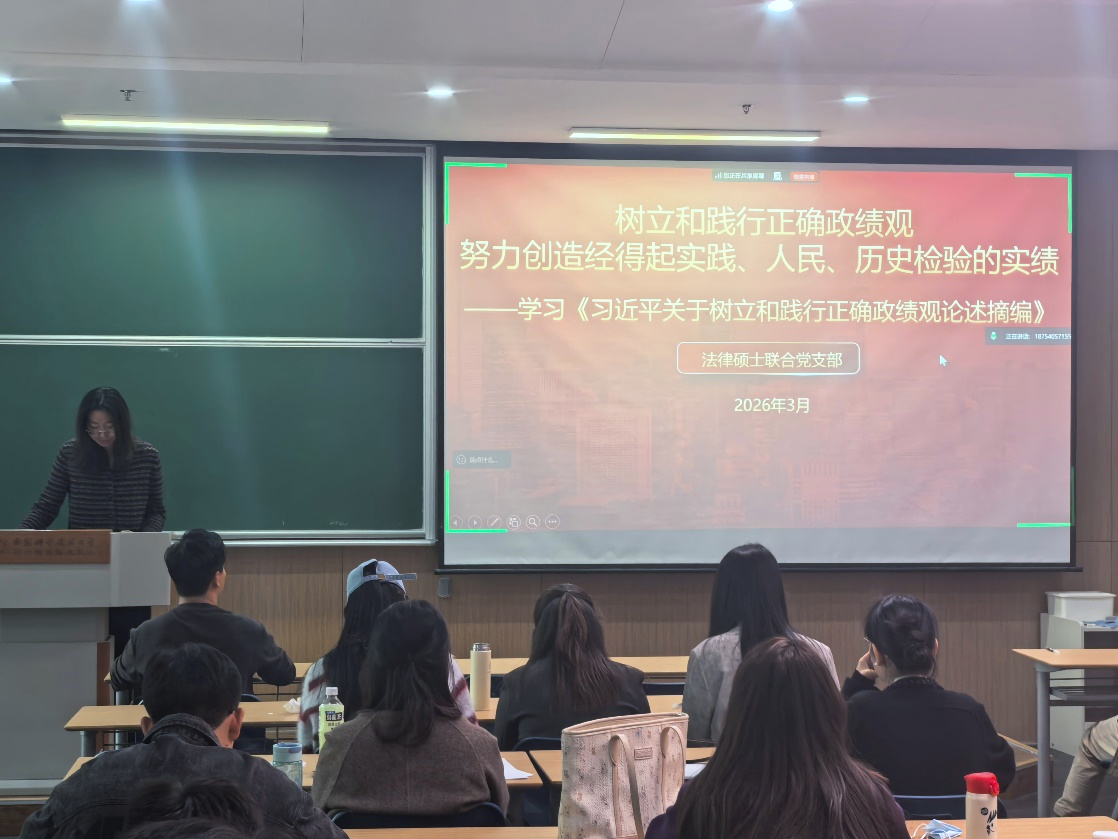 为进一步强化支部建设,深入学习贯彻习近平总书记关于树立和践行正确政绩观的重要论述,3月29日下午,法律硕士联合党支部召开2025年度组织生活会暨民主评议党员大会、“树立和践行正确政绩观”主题党日活动。会议由党支部常务副书记代健主持,学院党委委员、支部书记彭小宝出席会议并指导,支部全体成员共同参加。